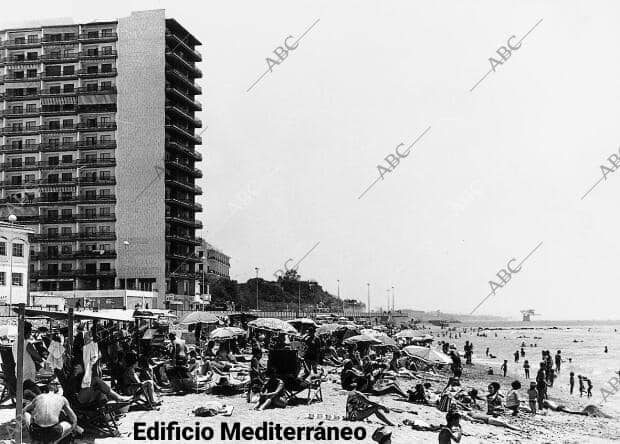 En las imágenes siguientes se ven como en aquellos años 60 empezaron a construir más edificios en parte del territorio marítimo. Como ejemplo el Edificio Mediterráneo y el Hotel Skol y luego vendrían el resto de más edificios, adonde en principio había la primera fila de casas.